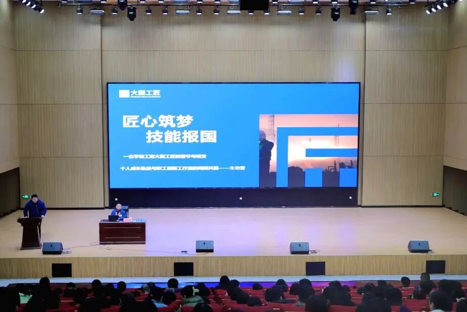 五载栉风沐雨,五载薪火相传。从奠基启航到弦歌不辍,冀南技师学院在技能人才培养的道路上已步履铿锵走过五载岁月。为献礼学院建院五周年,进一步厚植师生“技能报国”的使命情怀,12月10日,学院在学术交流中心大报告厅举办建院五周年系列活动暨“冀师大讲堂”第四十二讲。本次活动特别邀请全国劳动模范,大国工匠、河北省特等劳模朱劲雷,带来一场浸润匠心、激荡人心的专题讲座。全院师生、中原经济区技工教育联盟成员单位通过现场和直播方式同步收看。