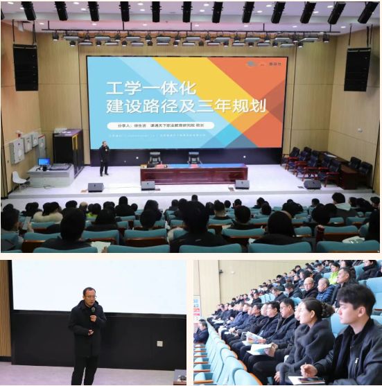 会议结束后,课通天下职业教育研究院院长徐生吉在一楼报告厅以“工学一体化建设路径及三年规划”为题开展专题讲座。讲座围绕工学一体化政策解读与实践落地展开,结合实际案例,聚焦技工院校的生存核心,深入剖析政策落地路径,并提供了如何帮助教师团队突破“卡点”的思路与建议,助力技工院校深化教学改革、提升人才培养质量。