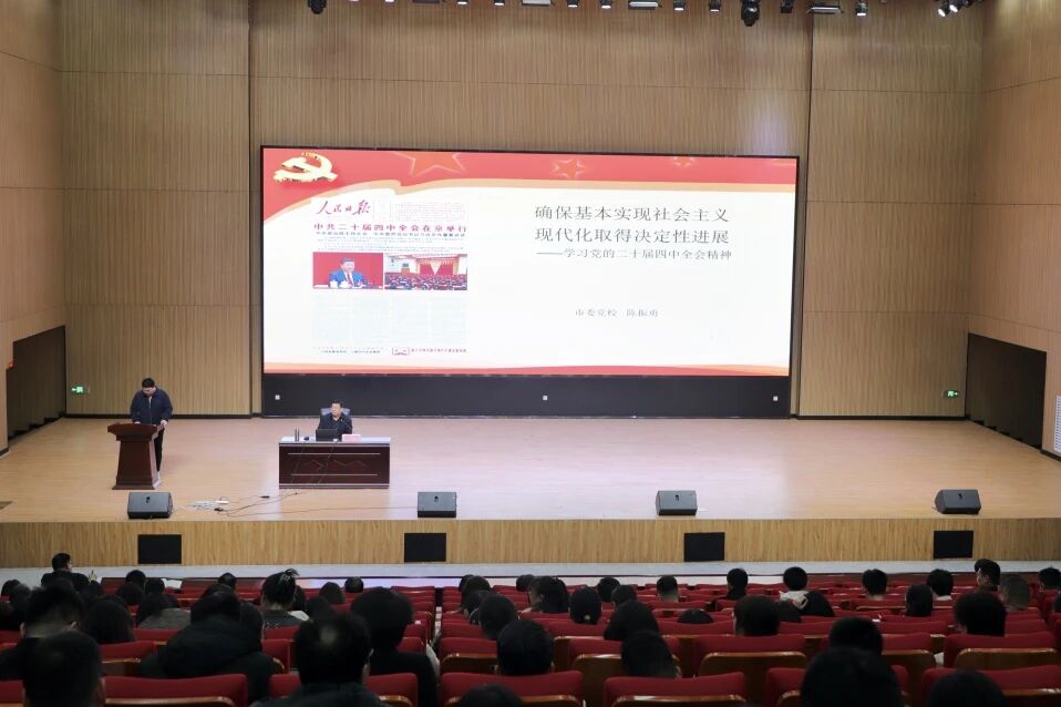 陈振勇教授以《确保基本实现社会主义现代化取得决定性进展——学习党的二十届四中全会精神》为题,围绕全会精神的核心要义以及“十五五”时期经济社会发展的指导思想等内容展开解读,同时结合学院办学实际,深入阐释了“十五五”规划纲要中关于教育事业的具体部署、重点任务与实践路径,引导全体教职工深刻领会全会精神的丰富内涵,切实把思想和行动统一到党中央决策部署上来。