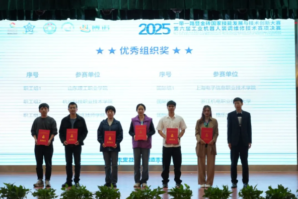 此次大赛作为兼具国际视野与专业深度的顶级技能赛事,吸引了全球152名选手参赛。经过激烈角逐,我院学生魏亦程荣获学生组一等奖,并成功晋级2026年摩洛哥北非国际赛;教师刘爽荣获职工组二等奖。同时,我院还获评学生组最佳组织奖、职工组优秀组织奖,充分彰显了我院在工业机器人领域的教学实力与人才培养成效。
