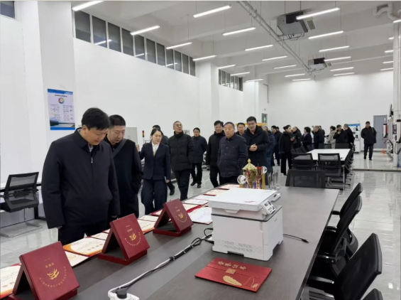 会议前夕,与会领导、嘉宾前往学院实训楼参观实训室建设。