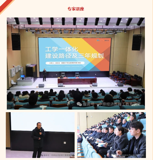 会议结束后,课通天下职业教育研究院院长徐生吉在一楼报告厅以“工学一体化建设路径及三年规划”为题开展专题讲座。讲座围绕工学一体化政策解读与实践落地展开,结合实际案例,聚焦技工院校的生存核心,深入剖析政策落地路径,并提供了如何帮助教师团队突破“卡点”的思路与建议,助力技工院校深化教学改革、提升人才培养质量。